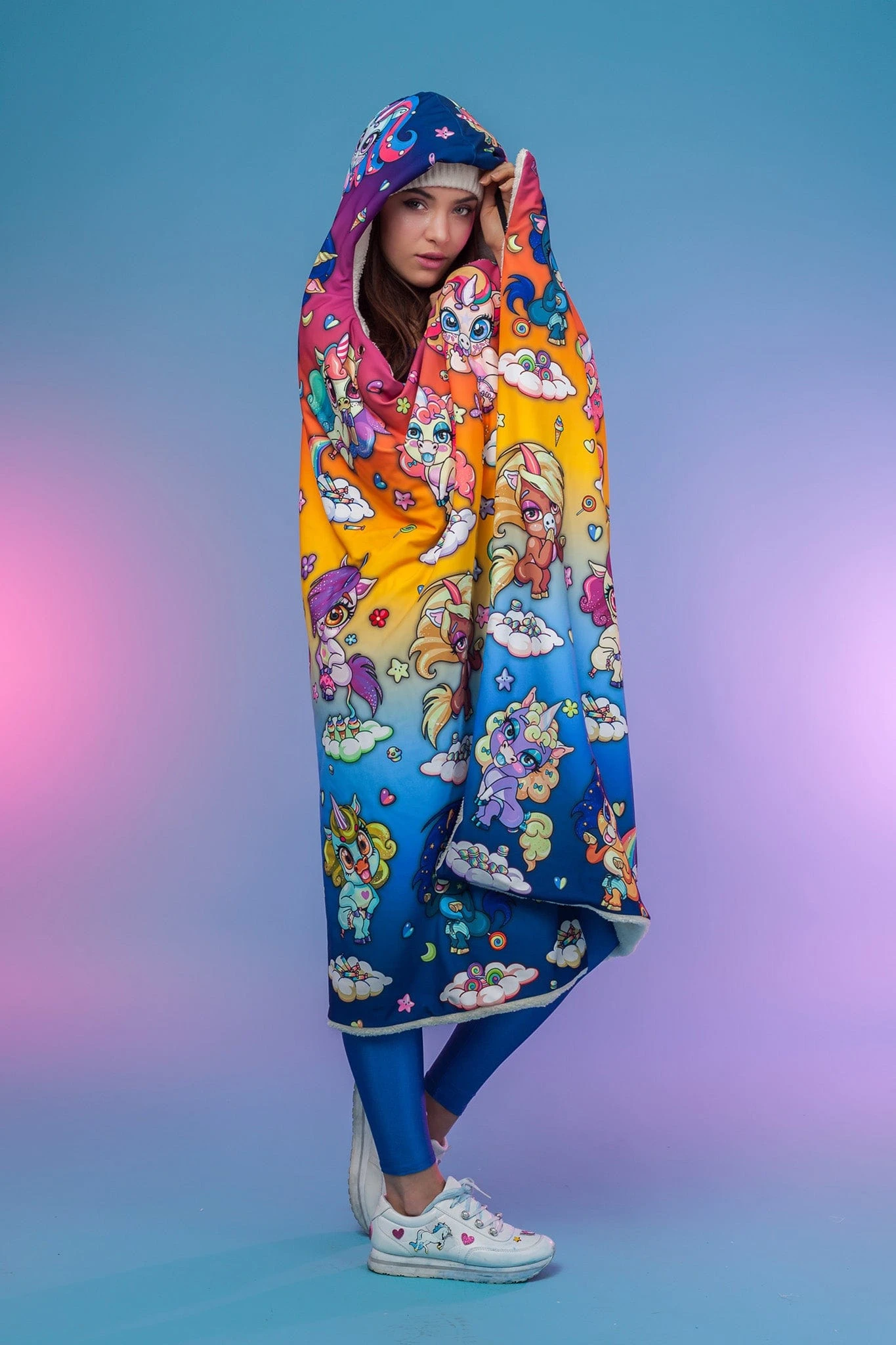 Snug in this super soft and warm blanket while watching movies or just use it as a cape, for sleeping, camping, or whatever your wild soul desires.