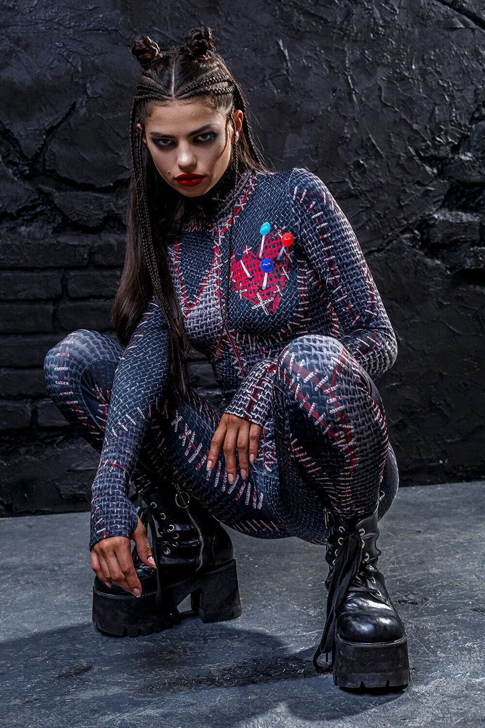The design features a body con fit with long sleeves, a mock neckline and a sturdy zipper neatly hidden in the back. Rock it on Halloween Eve or ur next festival of choice and stand owt in the crowd.