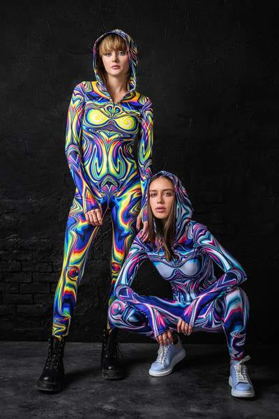 Psychedelic and luvin’ it. The Frenzy Liquid Fit Onesie is a lucid dream come true.Â