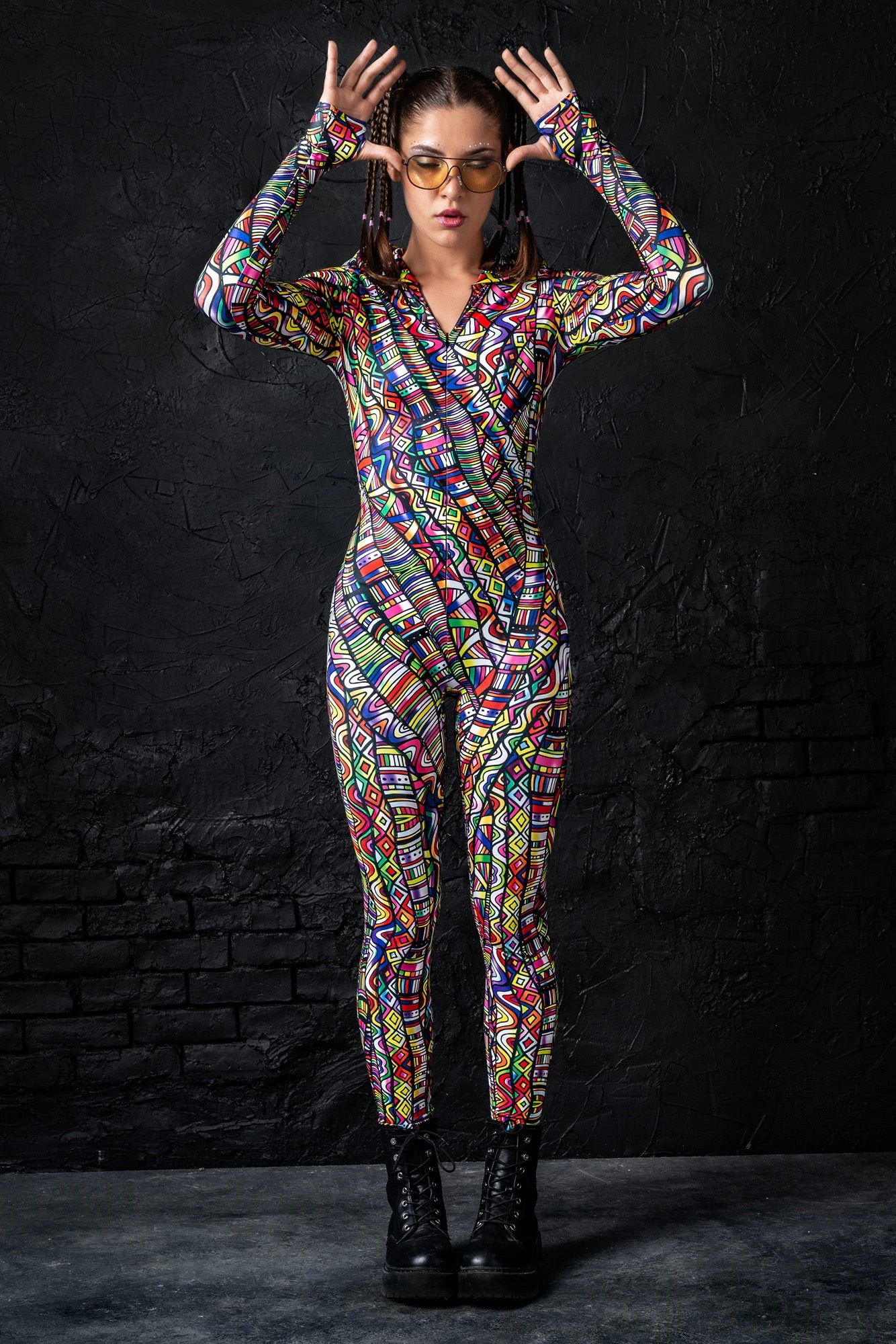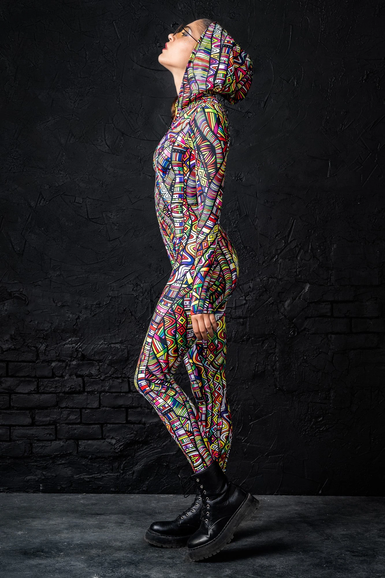 This piece is made from a high quality stretchy and breathable Lycra fabric, that feels wonderful on the skin. It’s printed with outstanding graphics that react to UV light, so you can literally glow.