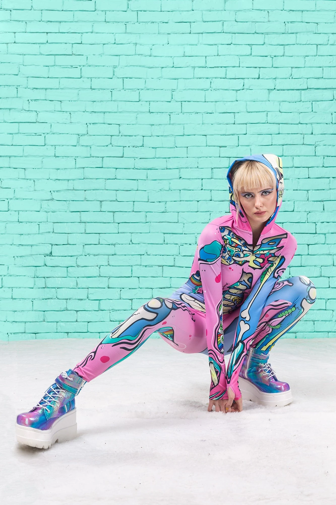 Hey candy gal, here’s a cute and freaky zombie bodysuit that will have ‘em dead! This hooded costume has a high quality print all over that is crisp and vivid live and does not distort when stretched. The texture and softness of this piece are superior, but better not let ‘em touch ya cuz they’ll be hangry for more! The hidden front zip closure and the printed lining in the hood make this costume everything you’ve dreamt of and more.