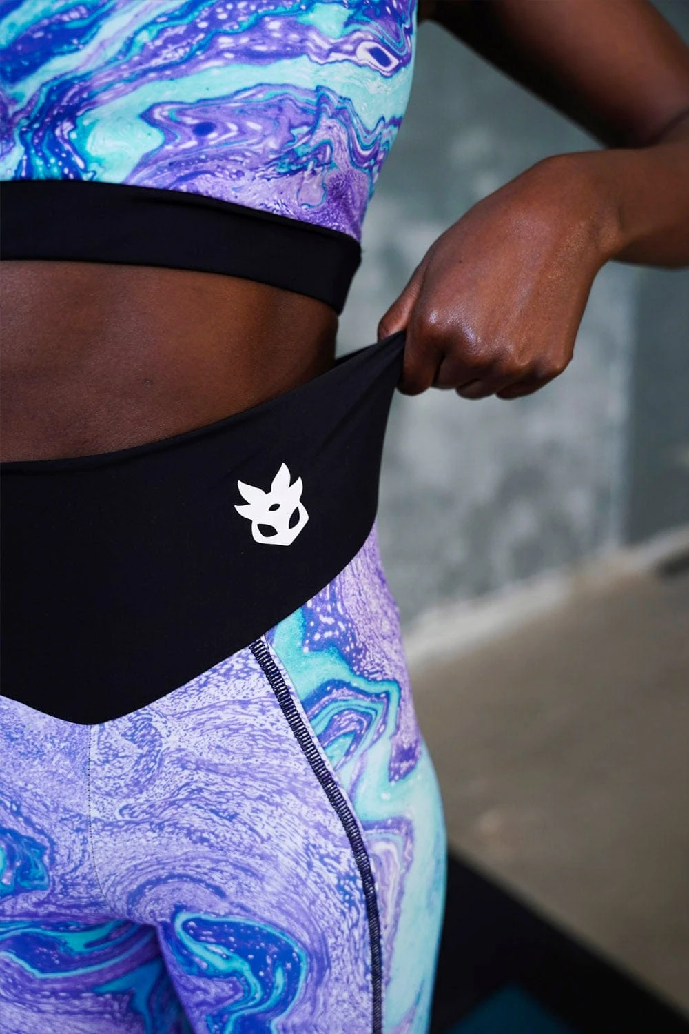 Ah, the colors of Uranus! Get a feel of them and conquer the world. They come alive in our vivid print to which we added designer cuts, heat seal logo, and crossed-over back straps, coupled together with underbust band in the top and three lengths of the leggings, all coming with high waist and supported waistband. It’s made of nylon and Elastane to make you feel it soft and light.