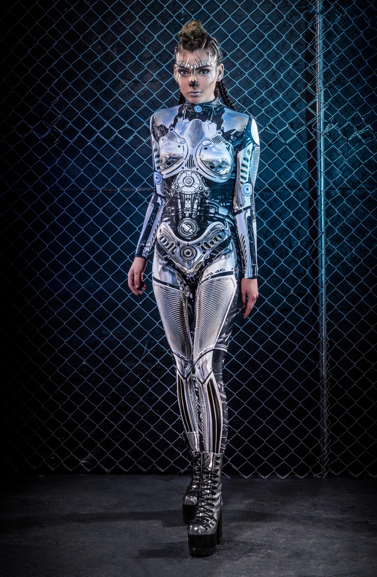 The Warbot System 46 Costume is the perfect addition to ur next cosplay fit. The piece is made from a high quality stretchy and breathable Lycra fabric, printed with exceptional graphics as alwayz.